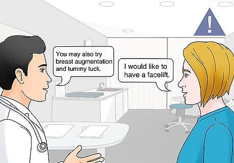 Be cautious if a surgeon tries to offer procedures you don't want. It's really important that the surgeon listens to you instead of tries to oversell procedures. If you get the feeling that the surgeon is trying to get more business instead of helping you achieve the results you want, you may want to find a different surgeon. For example, if you're interested in a facelift, they might tell you about other facial procedures that are options for you. However, if they try to push a tummy tuck or breast augmentation, they may not have your best interests in mind.