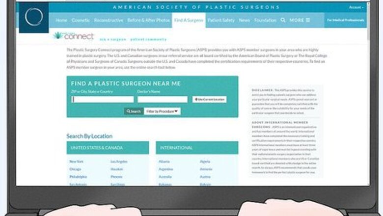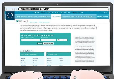 Find a board-certified cosmetic surgeon. Although it's great to get recommendations for friends, ask your current doctor to recommend a cosmetic surgeon. You can also use the internet to search for cosmetic surgeons that are certified by the American Board of Plastic Surgery. They may also be certified by the American Board of Cosmetic Surgery, which is a specialty board. You'll have peace of mind knowing that a board-certified surgeon has at least 6 years of surgical training and has passed written and oral exams. This certification shows that they're educated and trained in cosmetic surgery. Check that the surgeon's office is also accredited so you know that the office and staff are properly trained and equipped.