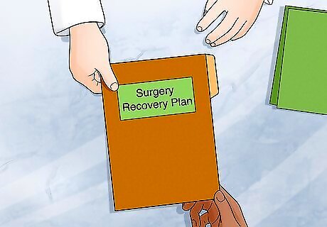 Go over your recovery plan with the nurse or surgeon before the procedure. Learn what pain medications you can take, what food you should be eating or avoiding, and how long you should rest for. If you'll need to change bandages or clean the site of the surgery, ask them to show you how to do it. Keep all of the paperwork they give you in a safe place so you can easily refer to it after the surgery. You'll probably need to arrange a ride home after surgery and might need someone to pick up medication for you. Ask a friend or family member to help you settle in after the procedure is over.