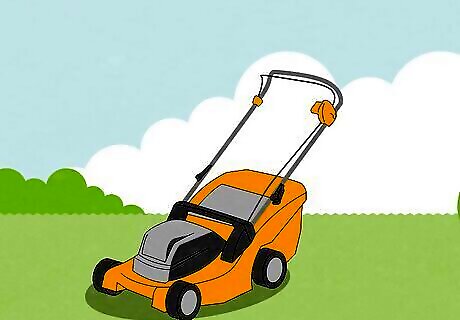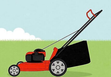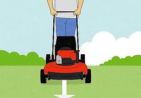 Walk-Behind Mowers Start a gas mower by pushing the prime button 3-5 times to prime the carburetor with gas. Hold the safety shut-off lever against the mower’s handle and pull the rip cord to start the engine. Move behind the mower and push it forward in a straight line over the grass you want to mow. Push down on the handle to lift the front wheel and pivot on the back wheels when you’re ready to turn. Let go of the safety shut-off lever to stop the mower. It’s usually located near the top of the handle in easy reach. The prime button is usually a red or black squishy button on the mower's body. Don't push more than 3-5 times, or you risk flooding the engine. The safety shut-off lever is a thin bar that runs parallel to the mower’s handle. If you have a self-propelled mower, push the drive lever forward to engage the wheels. Start an electric push mower by pushing and holding the start button. Then, pull the start handle. Otherwise, it operates in the same way as a gas-powered mower.