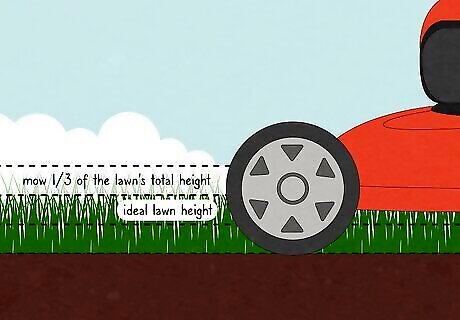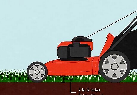 Set your mowing height based on your grass type(s) and climate. Mowing your lawn too short leads to brown lawns and more weeds. Measure from the ground to the bottom of your mower’s mowing deck, then from the deck up to the blades to find the mowing height. Adjust the height by lifting or lowering the levers on all 4 wheels when the motor is off. Ideal mowing heights vary based on several factors but usually fall within the range of 2 to 3 inches (5.1 to 7.6 cm). Here are height recommendations for common turfgrass species: Bermudagrass: 1 to 2 inches (2.5 to 5.1 cm) Buffalograss: 1.5 to 3 inches (3.8 to 7.6 cm) Zoysiagrass: 1 to 3 inches (2.5 to 7.6 cm) Kentucky Bluegrass: 2 to 3 inches (5.1 to 7.6 cm) Perennial Ryegrass: 2 to 3 inches (5.1 to 7.6 cm) Creeping Red Fescue: 1.5 to 2 inches (3.8 to 5.1 cm) Tall Fescue: 2.5 to 3.5 inches (6.4 to 8.9 cm) Contact your local agricultural extension program for advice if needed.