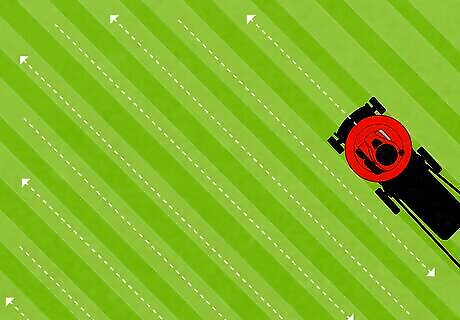 Change the direction of your mowing rows regularly. Don’t mow your square lawn in the same north-south lines every time. If you do, the grass starts to bend over permanently in its row’s direction, and you’ll wear track marks from your mower’s wheels into the grass. Instead, consider alternating between north-south and east-west lines with each subsequent mowing session.