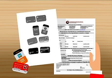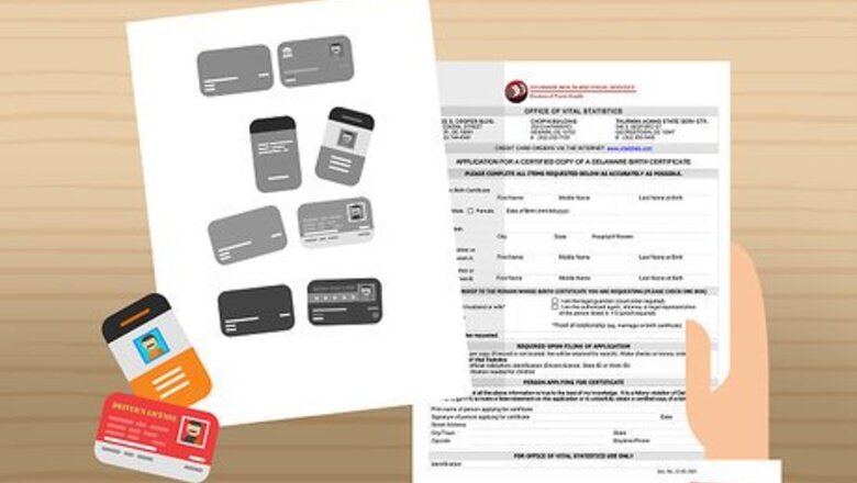 Gather the proper documentation. In order to get a copy of your Delaware birth certificate in person, you need to make sure you have the proper documentation ready before you visit one of the Offices of Vital Statistics. Having this information ready will ensure that there aren't any delays in getting you the birth certificate. You need to have a completed application form for a certified copy of a Delaware birth certificate. If you are applying for a copy of your own birth certificate, you need to provide a copy of your official photo ID. For example, you can provide your driver's license, military ID, passport, or a work ID. If you are applying for a copy of a birth certificate for another person, you need identification and usually other legal documentation. If you are the person's legal guardian, you require a court order; if you are the authorized agent, legal representative, you must provide some sort of proof of your relationship to the individual; if you are a family member and want it for genealogical purposes, then you also must provide some sort of proof of your relationship to the person. If you want a copy of your child's birth certificate, you will also need proof of this.