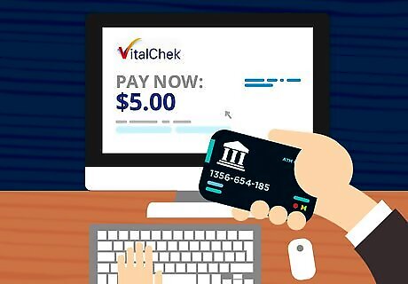 Pay for your birth certificate copies and Vital Chek's service fees. At the end of filing your request online, the Vital Chek website will request your payment. Vital Chek charges not only for the copy of the birth certificate, but also for its expedited services. Vital Chek accepts Visa, Mastercard, Discover, and American Express. The fee for Vital Chek's services ranges from $5 to $16 for obtaining the birth certificate. In addition, Vital Chek will charge you an additional fee for whatever shipping method you choose. The price for that will also vary depending on how quickly you want the birth certificate copy.