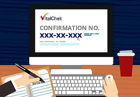 Note your confirmation number and wait for your birth certificate copy. After you've filed your application with Vital Chek and paid the relevant fees, you will receive a confirmation number by email. You should receive your birth certificate relatively quickly by using the online service. Make sure to note the confirmation number for the requested birth certificate in order to check up on the status or ask questions you may have. Vital Chek offers fast turnaround on birth certificate requests. The will file your application within one business day to government office and you should expect your copy in about a week. You can also check on the status of your application at https://www.vitalchek.com/order_status_signon.aspx with the order and pin numbers that Vital Chek provide you.