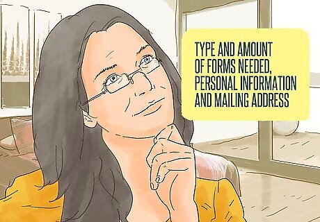 Verify your order. Once you type in your personal information, click "next" and verify your order. If all of the information is correct, complete your order and wait for the forms to be sent to you.