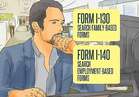 Filter your search by topic. At the top of the forms page you will be able to search for various forms using filters. Each filter will narrow your search and make it easier to find what you are looking for. The topics you can search by include adoptions-based forms, citizenship and naturalization-based forms, employment-based forms, family-based forms, green card-based forms, and humanitarian benefits-based forms. For example, if you are looking for Form I-130, you would filter your search by choosing the family-based forms. If you are looking for Form I-140, you would filter your search by choosing the employment-based forms.