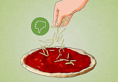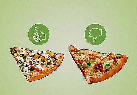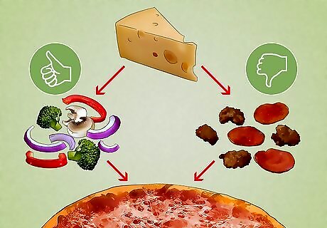 Prioritize the toppings that matter most to you. Compromise is a great way to cut out extra unhealthy elements and still get the toppings that you love. If you still want lots of cheese, you can balance it out by skipping a different unhealthy topping, such as sausage or pepperoni, and adding veggies instead.