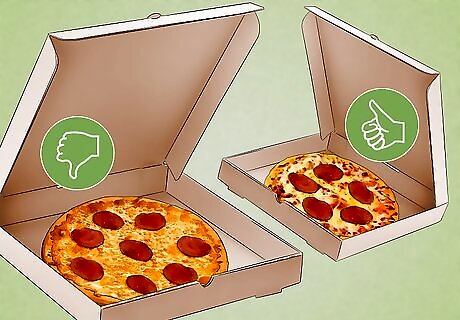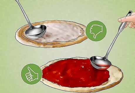 Choose tomato sauce over high-calorie and high-fat sauces. Avoid unhealthy, sodium-heavy options like alfredo or buffalo sauce. Order a red sauce instead, such as a simple tomato sauce or a hearty marinara. If the restaurant offers more than 1 variety of red sauce, check the nutrition information to see which one is healthier. For example, Domino’s Robust Tomato Sauce is healthier than its marinara sauce, since it contains less fat and saturated fat.