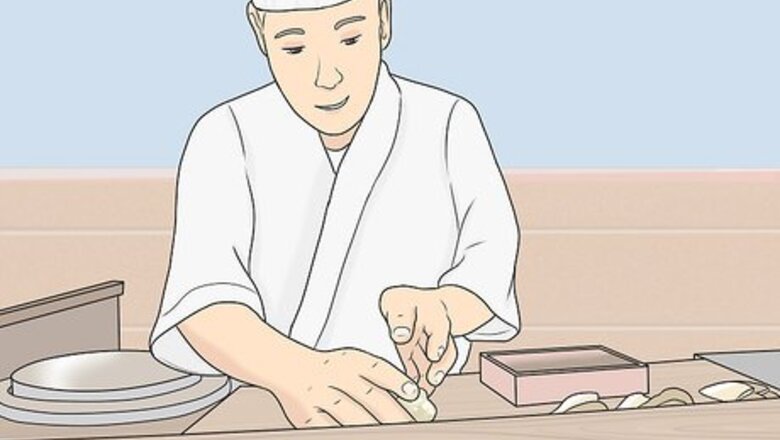 Order a limited amount of sushi at one time. Sushi is generally served a la carte. That means you choose individual dishes off the menu to order. Place your orders one at a time, waiting until you finish the first batch of sushi before ordering more. Ordering limited quantities will also give you a chance to sample the sushi if you’re unsure about what you like. If you order a large plate of sushi, the food has time to warm up and turn mushy before you eat it. Order in small quantities so you can enjoy your food while its fresh.