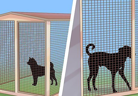 Ensure the primary enclosure is a suitable size for the dogs. In order to demonstrate that you are complying with the AKC’s policy on caring for dogs, all enclosures will need to be an appropriate size for the dog. This means that the dog is able to sit, stand, lie down, and turn around comfortably within their enclosure. Solid floors are preferred; however, the AKC will allow a perforated floor as long as there is a protective coating. An area with solid flooring must be provided somewhere within the enclosure.