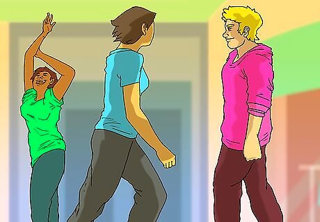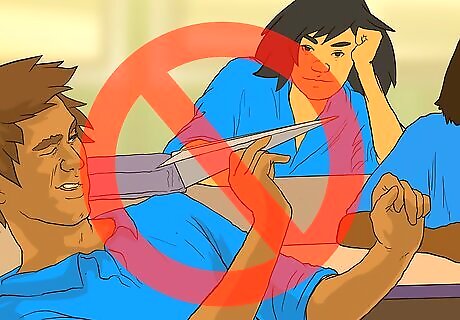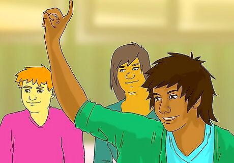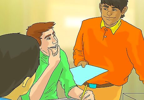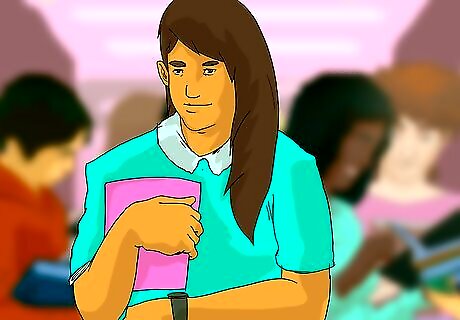 Avoid overt distractions in class. You might go into class with the best of intentions, but the more bored you are by the class, the more tempting distractions will be. It’s best to avoid them altogether. If you get easily distracted, ask to sit in the front of the room near the board so you're able to concentrate. Avoid talking about unrelated topics with your friends. You can discuss the material, but don’t get sidetracked. If you tell them that you need to raise your math grade, they will understand when you disengage from conversation. If you often leave class or space out, remember that paying attention to something that you find boring is also a matter of willpower. Willpower is like a muscle-- the more you use it, the stronger it becomes. If you can get through one lesson without leaving class, you’ve become that much better at staying engaged in class. Don’t give up-- as you strengthen your willpower, paying attention in class will become more of a habit than a chore.