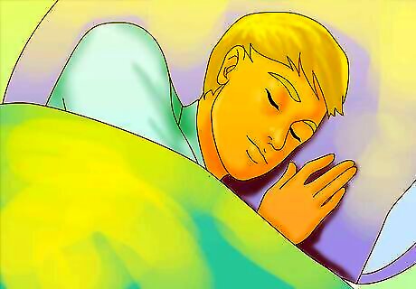 Get enough sleep before school. The most obvious reason you might be fighting sleep in math class isn’t boredom, it’s because you didn’t get enough sleep the night before. A study of high school students correlated better grades with sleeping better and getting to bed earlier. Elementary school children should get 10-11 hours of sleep. Middle schoolers should get 9-10 hours, while high school students should aim for 9 hours. In order to get a good night’s sleep, you should set a regular sleep schedule and stay with it, even on the weekend. Avoid eating or exercising right before bed (although more physical activity throughout the day will make sure you are ready for sleep come nighttime). Do the same relaxing activity every night before bed. This will train your brain to transition into sleep.