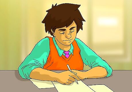 Take notes in class. Taking notes helps in two ways. First, you’ll feel more active and engaged if you’re physically doing something. Second, you’ll be recording information that you can review later. Make sure that you can process what the teacher is saying. If you have trouble writing and listening at the same time, first absorb what the teacher is saying, then copy it down in your notebook.