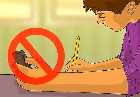 Put down your phone. Whether you are doing research for class or quickly checking your email, the immediate gratification that you get from your phone will make it harder to pay attention. While multitasking may feel good and productive, it is actually just feeding your need to see something new every few seconds. You will find it easier to focus if you shut you phone off, put it in your bag, and check it at the end of class.