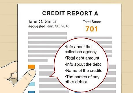 Check your credit report to see if the collection account is listed. Sometimes, a debt collector will make the first contact with you before they've even reported the debt to a credit reporting agency. If you act fast in this situation, you may be able to keep the collection account off of your credit report, which can avoid further damage to your credit score. US law entitles you to at least one free credit report each year from each of the 3 major credit bureaus: Equifax, Experian, and TransUnion. To get your free credit reports, go to https://www.annualcreditreport.com/. If you've already gotten your free credit reports for the year, you may still be able to check for the collection account entry using a free online or mobile app credit monitoring service, such as Credit Karma or WalletHub.Tip: Make sure you're looking at the most recently updated report. Check all 3, since you have no way of knowing where the collection agency will report the account. They may only report it to one or two credit bureaus, or they may report it to all three.