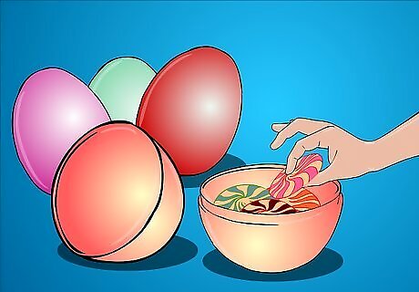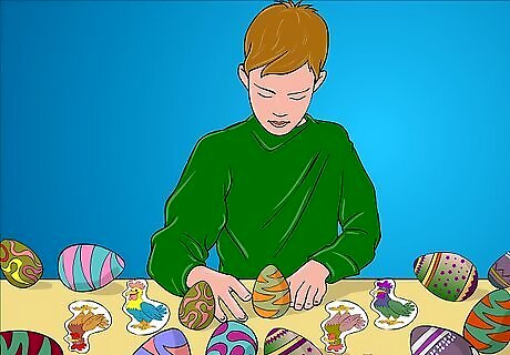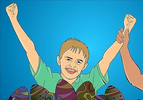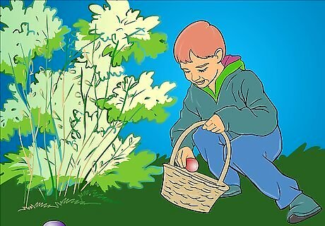 Send your guests out to hunt for the eggs. Set a limit for how many they can have each, so that nobody is left out. Once you're sure all of the eggs or other treats have been collected, allow the kids to play with or eat their prizes!