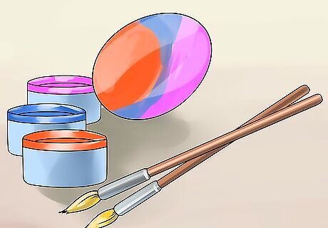 Set up a decorating area. Place egg dyes in containers for dipping and other decorative items. See How to dye Easter eggs for details on decoration method and styles. For the cookies, set out different colors of frosting paste (in tubes) and a whole lot of decorative edibles like sprinkles, nonpareils (hundreds and thousands), candies, colored sugar, and other sweet items for decorating with. Have a clean-up station for washing dirty hands.