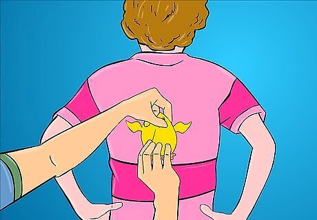 As the guests arrive at the door, pin a stuffed small animal on their back without the guest seeing the animal. Be sure to use safety pins and make sure it is on securely. Ask the child to stand very still while this is happening!
