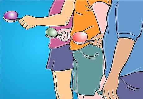 Line the contestants up next to each other on a starting line. It's best to have this race on grass or some other soft surface, to give dropped eggs a chance!