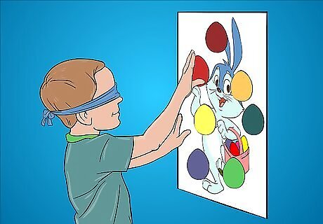 Blindfold the players in turn and give each an egg. Each egg is to be pinned on the sheet, and right in the Easter bunny's arms, if possible. As the players take their turns, no matter how straight on the way they were started, the Easter bunny will be surrounded with eggs, until a player pins the egg in the Easter bunny's arms. The player who is closest to the arms, or spot on, wins a prize.