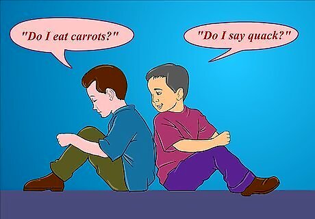 Through the course of the party, guests have to ask each other questions about the identity of their animal. They must be yes-or-no questions. For example, they can ask "Do I eat carrots?" "Do I say quack?" etc.