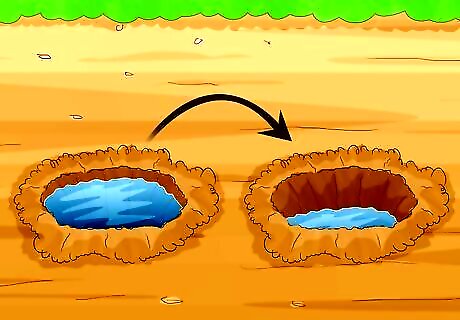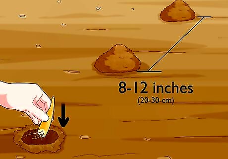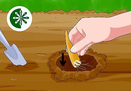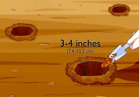 Plant your bulbs in holes that are 3 to 4 inches (7.6 to 10.2 cm) deep. Use a gardening spade to hollow out areas of soil that are large enough for your bulbs. Set the bulbs into the holes on their sides, and try to handle the bulbs as little as possible to avoid damaging them. The bulbs will figure out which way is down by feeling the sun and orient their roots in the opposite way.