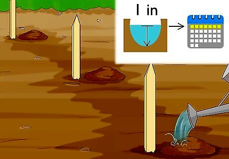 Water your bulbs once a week to keep the soil wet. Use a watering can or a hose to keep your bulbs wet. Give them about 1 in (2.5 cm) of water per week so they have a chance to soak it in, and try not to let water puddle on top of the soil.Tip: Watering once a week is better than every few days so that your bulbs don’t get waterlogged and rot.