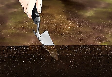 Use a small hand trowel to dig into the soil to prevent tree root damage. Large trees have numerous small, woody roots living within the top 12–18 inches (30–46 cm) of the soil. When planting, it is important not to damage the tree's roots by cutting or breaking them. Dig with a hand trowel instead of a garden shovel to be as cautious as possible. A tree's smaller roots are important because they are responsible for absorbing water and nutrients from the soil.