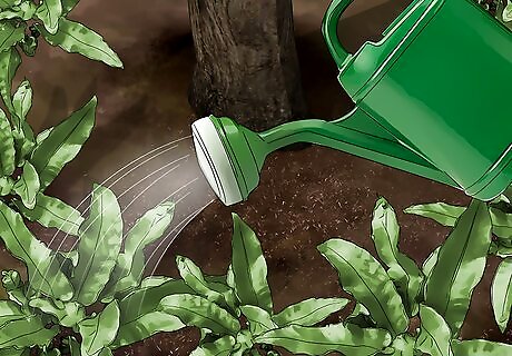 Water the plants thoroughly. Once planted, your small plants will have to share their water supply with the large tree above them. Compensate for this by watering them right after planting. Give the soil enough water to visibly moisten it.