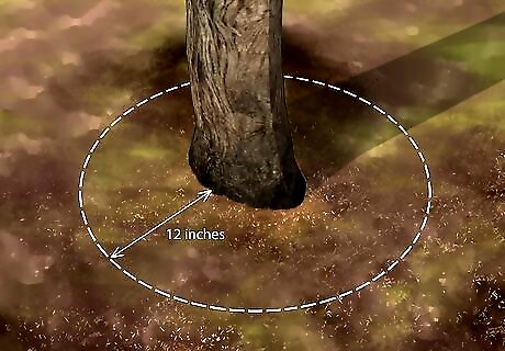 Start planting at least 12 inches (30 cm) away from the tree trunk. Cutting or tearing a tree's bark may leave it vulnerable to disease and insects. Avoid this by leaving a gap between the base of the tree and your plants. Start planting around 12 inches (30 cm) from the tree and plant outwards. The tree will grow in diameter so be sure to leave room between the trunk and the new plants. If you plant annual plants, it will be easier to maintain this distance between the tree trunk and the plants when you replant them every year.
