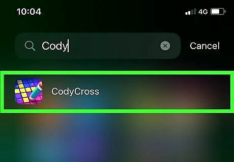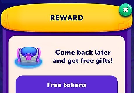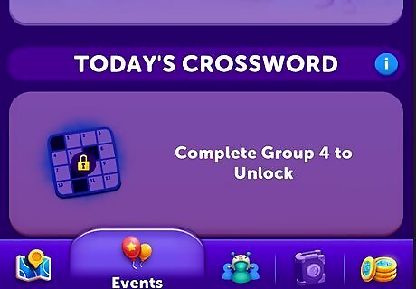 Open CodyCross. Icon: CodyCross's app icon looks like a crossword puzzle in purple and yellow colors. It may sometimes show a slightly different theme on the app button for different seasons (flowers in spring, a pumpkin near Halloween, and a holiday motif for Christmas). Splash Screen: Wait for the screen to show CodyCross, the CodyCross Martian mascot. Although it's not too interactive, you can tap on CodyCross's left hand to see him produce various unusable button pictures Tap the orange, yellow, and off-white Play button. This button is near the bottom of the screen, just below CodyCross. CodyCross may serve you a tutorial through the first few groups. Collect what you are forced to collect through all the daily chests. When you are given your first daily chest after 24 hours of play, you'll be forced to collect free goodies. Depending on your use of CodyCross, you'll often be given just 2 CodyCross tokens and 27 BItz to be used in the CodyCross Library. Formerly, this used to give players different power-ups, and even before that, primarily just CodyCross tokens. If you play a puzzle when the daily chest opening time is ready, once you exit the group screen, you'll be pushed to open the new daily chest. If you don't have a chest ready to be opened upon entry into CodyCross, you will see a timer on the main game map. This timer will be shown as a treasure chest with purple edges in the top left corner of the screen.
