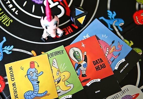 Use the Word Worm card. Word Worm cards involve challenges with words. Words may be scrambled, for example, or you may have to guess the definition of a given word. Pick a player with a good vocabulary for this card. People who read a lot or who write for a living might be better at defining or unscrambling words. If anyone on your team has a background in etymology or linguistics, choose them for this activity. Oftentimes, the roots used in words offer a hint to their meaning. Someone who's studied words academically is more likely to pick up on these subtleties.