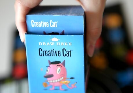 Play Creative Cat. Each space on a Cranium board corresponds to a certain type of card. The cards contain activities that must be completed before your team can move across the board. There should be a small hourglass timer that comes with cranium that allows players one minute to complete the activity. If you do not have your timer, you can use a watch or phone to keep track of time. One type of card is the creative cat. The creative cat card involves a creative activity. You may use the clay to make a sculpture and have another player guess what you're sculpting. You may also do a Pictionary-type drawing activity. Unless otherwise specified on the card, you can choose which team member performs the activity. When playing Creative Cat, it's a good idea to pick a more artistically inclined player. If someone is good at drawing or sculpting, allowing that person to engage in the activity will give your team a better chance at winning.