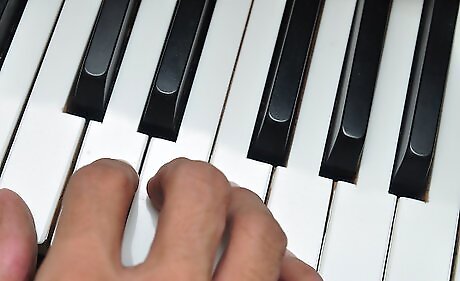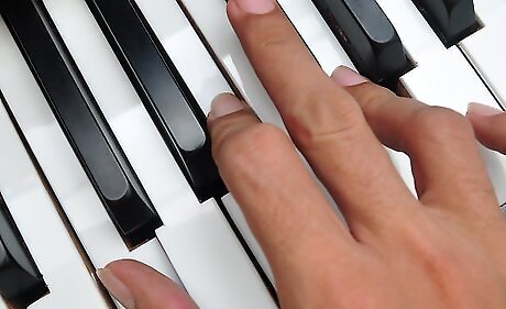 Start with your right hand. Place all of your fingers in the "middle c" hand position. This means finger 1 is on C, finger 2 is on D, finger 3 is E, finger 4 is on F and finger 5 is on G. To find this position quickly, just put your thumb on C and let the other fingers fall into place, one finger to one note.