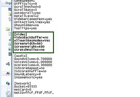 Find these lines(ctrl+f): [video] Screenwidth=640 Screenheight=480 Stretchmovies=no