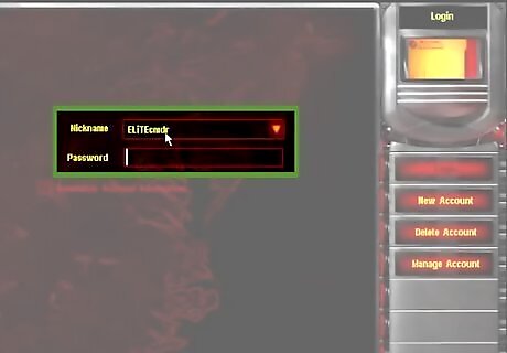 Enter the XWIS nickname you created in the Game Account, along with the Game password also supplied. Remember your password!