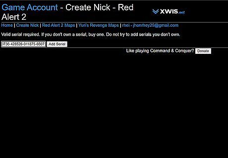 Add a Red Alert 2 serial and create a nick. A nick is a nickname - it's what you'll be known as.