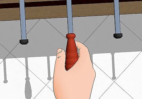 Pass the ball to your 3-rod row of players. Secure the ball beneath your 5-rod pole after your serve. Rotate the pole so the player’s foot is at a 90-degree angle behind the ball. Move the player forward to “kick” the ball, but continue to swing the player upwards to follow through with the kick. With your 3-rod row, “receive” the pass by holding your 3-rod player at a 30 to 45-degree angle behind the ball. Similar to real football or soccer, passing is a valuable strategy that can help you keep the ball moving.
