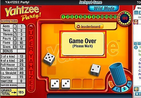 Recognize what happens after you've rolled the 13 rounds of Yahtzee dice. If there is time remaining, you will be asked whether or not you'd like to complete some additional bonus throws to receive bonus coins. Try to complete this for as much time as you can, as the time remains. Your scoring doesn't have to be perfect, but it must match one of the five to six major categories as what is on the bottom half of a Yahtzee scoreboard. These include three-of-a-kind, four-of-a-kind, full house, small straight, large straight and Yahtzee.