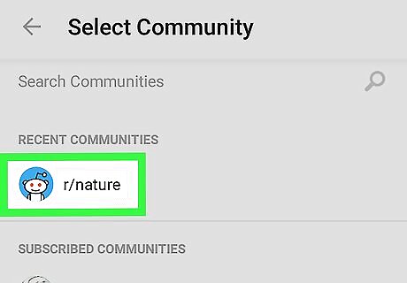 Tap Select Community. A list of subreddits you visited recently will appear.