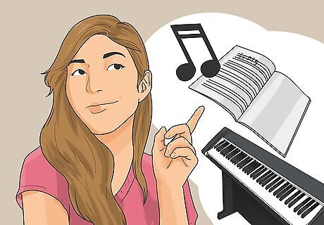 Learn to read music. Most piano music is written on charts in musical notation, and it is rare to find a piano player who cannot read music. Purchase a book, watch videos online, get a music learning app or ask your teacher to help you learn so that you can play any music you can get your hands on. Practice reading music each day so that it becomes second nature. You can try to play pieces by sight, bring charts with you on the bus, play songs frequently or play musical games online.