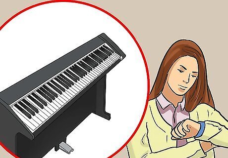 Find time to practice every day. It is much easier to learn piano if you practice every single day, building off your prior successes and lessons. Even practicing for 20-30 minutes each day is better than only practicing once a week for a few hours. Everyday practice helps cement what you are learning. Create a practice chart with the time during the day you will practice and mark off each day you do. Place on a wall you pass often to remind you and don't forget to add a reward onto it when you have completed a certain amount of days. The more frequently you practice, the faster you will improve so don't take weekends off. Any practice everyday is better than no practice.