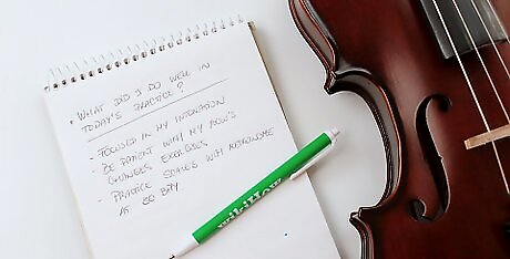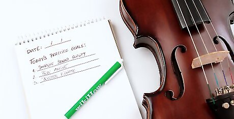 Determine today's purpose. Every time you walk into that practice room, have a purpose in mind. And it shouldn't be "to practice violin," either. It needs to be something specific – a goal you can work toward. Whether it's fixing a problem spot, polishing a piece, or starting on a new one, have that lined out at the start. And then at the end you'll know if you accomplished it or not. You'll note that with every session, your purpose likely changes. One by one, each little goal will get crossed off, until you're working on more and more skilled issues. This will give you a sense of progress and accomplishment, too, aiding in your motivation to keep going.