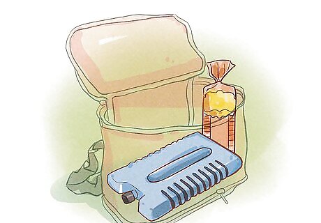 Bring your own water to ensure you don't run out. Even if your campsite has promised to have drinkable water, it's best to bring your own. Bring bottled water you can take with you on hikes or other activities, making sure there's enough water for each person. If there's room in your cooler, place your water in there to keep it cold.