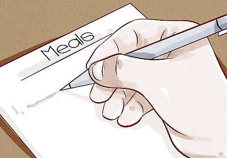 Decide which meals you'll eat while camping. When choosing meals, you want foods that will travel well and will take minimal effort to cook. Think simple meals like sandwiches, easy breakfast foods, or foil meals you can heat over a campfire. Write down what you'll have for each meal to make sure you don't forget any ingredients. Other meal ideas include pancakes, oatmeal, pasta, tacos, and nachos. Don't forget to bring s'mores to roast around the campfire! Pack bread and peanut butter to make easy peanut butter sandwiches.
