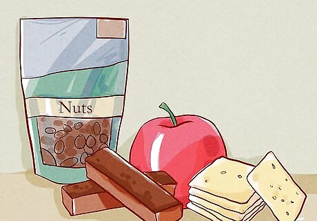 Choose simple snacks that can be eaten on the go. If you're on a hike or out swimming, you won't be able to fix a complete meal. Pack snacks like trail mix, fruit, crackers, or granola bars to eat while you're having fun, or to tide you over until the next meal. Bring snacks in your backpack if you go on a hike or away from the campsite.