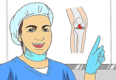 Exercise to build strength in the muscles surrounding your knee. Your doctor or physical therapist will likely recommend a list of exercises designed to strengthen your quads, calves, hamstrings, and other muscles and tendons in your leg that support your knee. The stronger these muscles are before surgery, the less strain you'll put on your knee during recovery. Try using an exercise bike for a low-impact exercise that will strengthen your knee. Start slowly, working your way forward and backward until eventually you can get all the way around on the bike. Depending on the severity of your injury, some of these exercises might be difficult or painful for you to do. If you're having a hard time with them, speak up and let your doctor know. In some situations, your doctor might recommend that you start working with a physical therapist before surgery to get your leg and knee in the best possible shape going in.