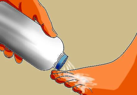 Use foot powders. A variety of medicated foot powders and simple home ingredients can help reduce or prevent foot odors. Take a small amount of your chosen powder and rub it all over your feet. Use a soft cloth to lightly dust off any that cakes up. Common powders used to control foot odor include: Corn starch. Baking soda. Baby powder.