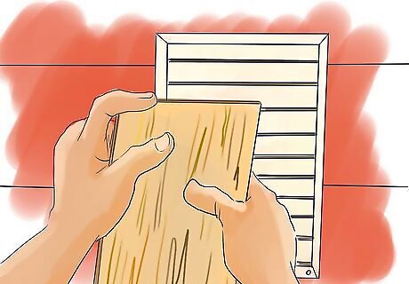 Board up the rectangular ventilation hole. Put one large piece of plywood over it, and nail that right outside of the hole where the wall touches the board. Only do this if the hole faces the direction you think the some is coming from.